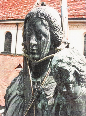 La statua della “Madonna” sulla “Mariensäule” di Costanza (XVI secolo) prima